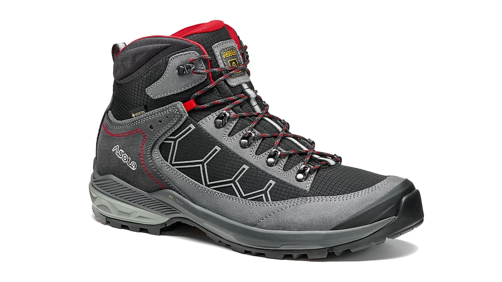 The water-resistant suede and high tenacity nylon upper offers protection and comfort while the Gore-Tex Extended Comfort Footwear lining guarantees waterproofness and breathability. The outsole package is made of a two density Eva midsole: the first density is harder for giving support and stability while the second is softer which assures comfort and cushioning. The Asolo/Vibram outsole has a self cleaning design and it uses the MegaGrip compound which gives amazing grip, traction and performance on wet and dried terrains. To complete the model a tpu cap for protection and the hardware lacing system for a fast and precise lace up.![]()