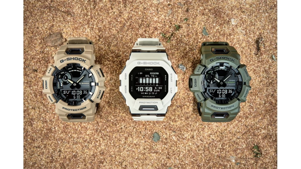 The sporty G-SHOCK MOVE meets the city streets. Take your training to the next level with urban colors equally at home downtown and in the great outdoors. The iconic square form of the very first G-SHOCK, now with an accelerometer, distance measurement and Smartphone Link functionality. More than ready for running and other sporting pursuits, these watches integrate toughness-driven design with sports technology. Think of it as essential training gear to complement your active lifestyle.![]()