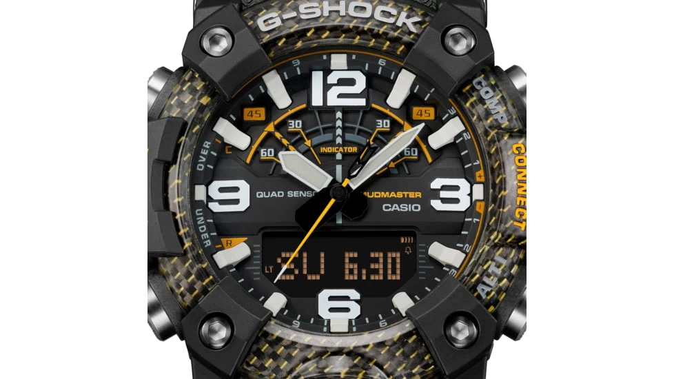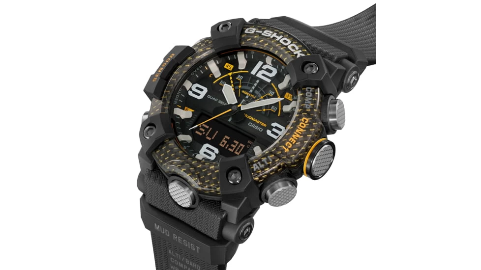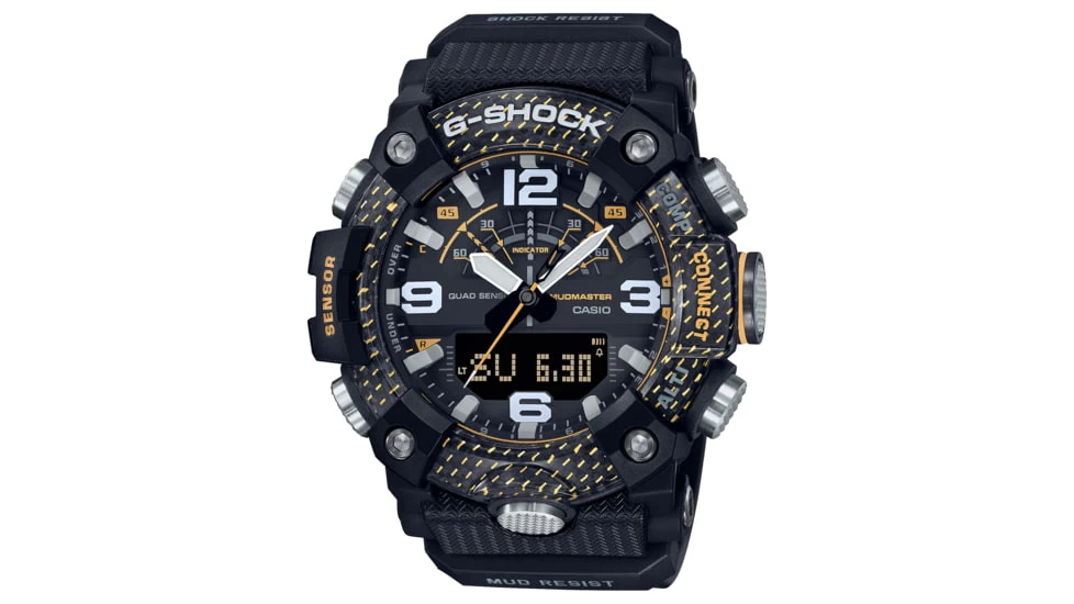 Conquer tough terrain and grab attention with a rugged timepiece boasting a bold, eye-catching color scheme. Designed to work even in the harshest environments, MASTER of G specialty watches take timekeeping to new heights with a rugged design accented in the bright yellow used for emergency rescues. The GGB100 MUDMASTER employs high rigidity carbon in the case to keep damage and warping at bay and ensure extreme airtightness and shock resistance. This timepiece also features a filter to protect against mud, a stainless steel panel back, and a back cover made of shock-resistant fine resin embedded with glass fibers, giving it a high level of resistance to dust and mud. The bezel also uses three layers of fine resin with carbon fiber inserts. This tough, rugged design is accented in bright bold yellow. Practical and functional, this watch is equipped with digital compass, altimeter/barometer, thermometer and step counter. Easily correct the time using the dedicated G-SHOCK app, and tap into loads of other useful features including the Mission Log, which automatically records altitude data obtained from the watch and route data obtained by your smartphone.![]()