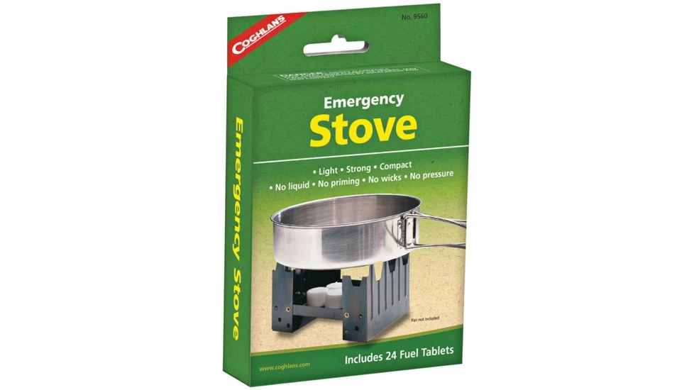 Light, strong, and compact. Requires no liquids, no priming, no wick and no pressure. 24 fuel tablets included. Uses any solid fuel such as Hexamine, Trioxane, or Sterno.![]()