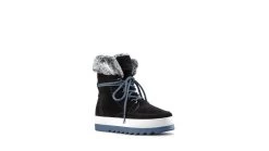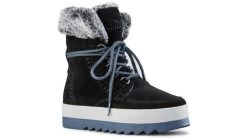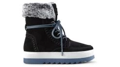 Mid-calf slip on boot with faux fur collar. Rounded toe. Contrast front-lace closure with ankle wrap. Lightweight Thermoplastic rubber outsole with contrasting Polyurethane cushion midsole.![]()