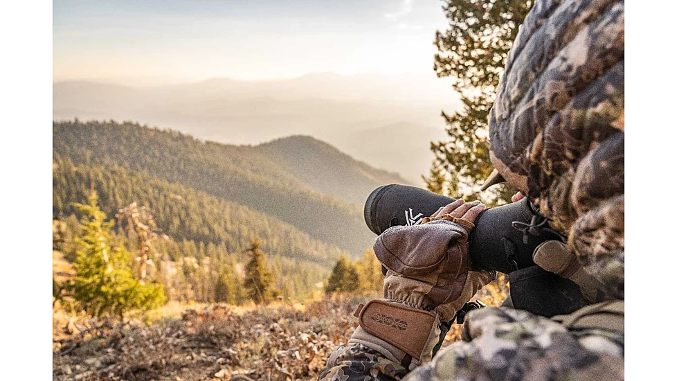 Our Polar Mitts feature everything you need for long days on the hunt in the snow and cold evenings at camp. The waterproof, goat leather, 3M Thinsulate insulated mitt includes Nomex fingerless liners,and the fold-down mitten hood provides access to your bow, rifle or when you need maximum dexterity. Our proprietary Hellbender (30k waterproof/30k breathable) tri-layer fabric keeps out the elements but remains extremely breathable and flexible while the palm reinforcement resists wear and abrasion from ski and trekking poles.![]()