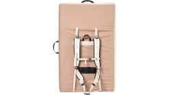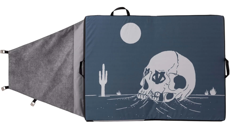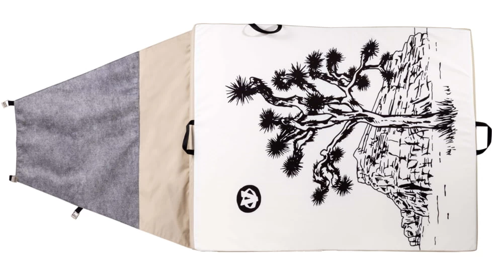 Adjustable and contoured backpack straps, larger and more cushioned waistband to keep pad/gear weight on the hips. A sternum strap to keep shoulder straps in place and load lifters to redistribute weight off shoulders and onto the hips. New quick-release industrial strength metal cam style buckles all around for easy open and close. huge carpet square to clean shoes. A combination of metal cam style buckles, webbings and flaps to secure your gear and, or another pad. Easy access handles to move pads quickly from boulder to boulder without closing the pad. Three inches of open cell foam sandwiched between one inch layer on top and bottom.![]()