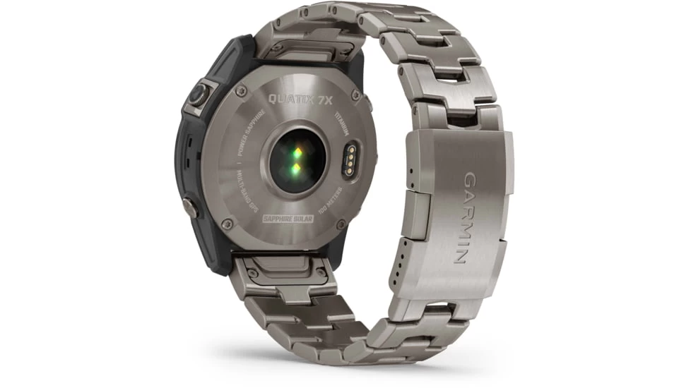 Plot your paradise on the water and beyond with quatix 7X Solar Edition, the multisport GPS smartwatch that has all the features you need on your boat and the ones you want off it, including solar charging. quatix 7X Solar Edition provides comprehensive connectivity with compatible Garmin chartplotters and other compatible marine devices to offer autopilot control, data streaming, Fusion-Link entertainment system control, integrated tide data on the watch face, new alarms for better situational awareness and much more. Use traditional button controls or the new touchscreen interface to access selections. This smartwatch includes preloaded maps for thousands of golf courses and ski resorts worldwide and has preloaded TopoActive maps for outdoor adventures. When paired with your compatible smartphone, enjoy advanced smartwatch features for all-day wearability include built-in activity profiles for water and land sports, performance metrics, smart notifications, 24/7 health monitoring, access to the Garmin Connect app and Garmin Pay contactless payments (with a supported country and payment network)![]()