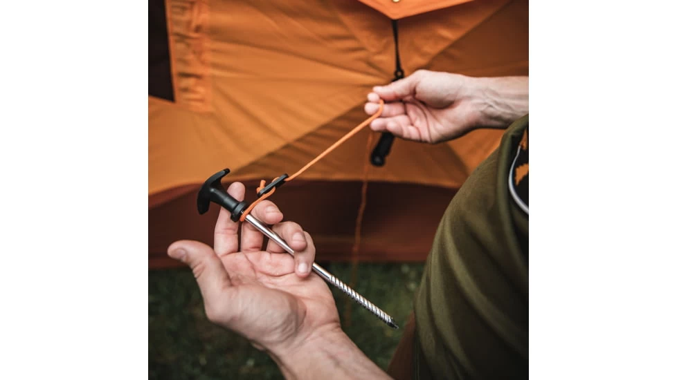 The Gazelle All-Terrain Stakes have been tested to work in all soil conditions. They are sturdy enough to be pounded into the ground and have a threaded tip that allows you to screw them into the ground in rocky soil. The molded handle makes it easy to extract them from the ground and provides an optimal tie-off point. The kit comes with 12 stakes and four guy lines all in a convenient carry bag.![]()