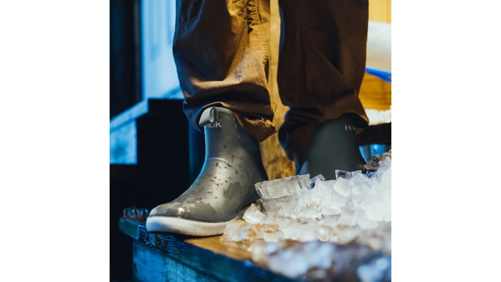 Sometimes, the best fishing is found in the worst conditions. Huk’s Rogue Wave fishing boots are specifically designed for all-day comfort and engineered for optimal performance in any condition. These slip-on style boots are constructed of incredibly durable neoprene rubber for protection from the elements and reliable strength. Carefully designed with positive traction in wet conditions, Huks exclusive Grip-X Slice outsole traction pattern and microchannels ensure stable footing that grabs in all directions, no matter how slick the boat deck or dock may become. Breathable mesh liners help ensure the boots stay dry on the inside, keeping the wet on the outside. The comfortable rounded toe and non-marking outer sole help make the Huk Rogue Wave boots the right fit for wet weather.![]()