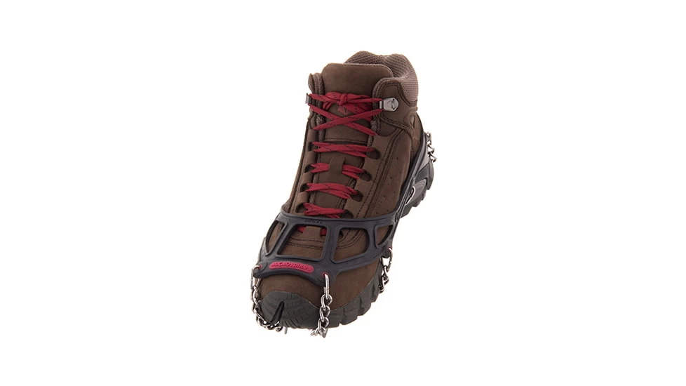 Winner of the Backpackers Editors’ Choice Gold 2012 Award, Kahtoola’s MICROspikes create a grippy, durable, slip-on traction system that features strategically placed stainless steel spikes connected to a dynamic flex-chain with a tough elastomer shoe harness. The unique “microspike” chain adjusts itself to grip nearly any surface – from ice and packed snow to wet rocks, concrete, and scree. Extremely durable, MICROspikes require no special buckles or straps. This pocket-sized traction device is the answer for people of all ages who want to stay active in the winter with convenient, effective foot traction.![]()
