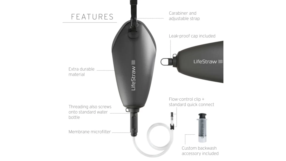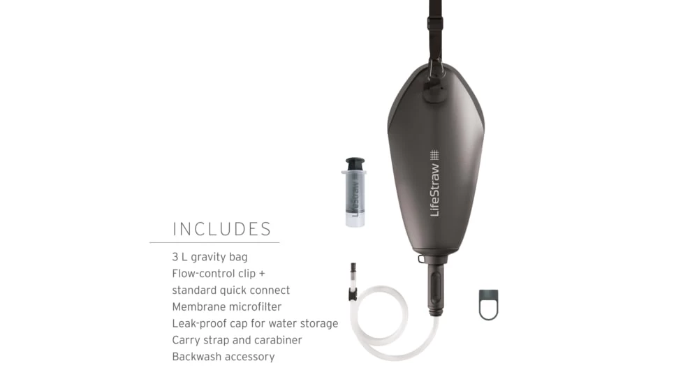 Meet the LifeStraw Peak Series 3L Gravity Water Filter System, ideal for backpacking, small group camping, hiking, and travel. Its the simple, economic lightweight and compactible option for back-country camping and backpacking. The optimized filtration cartridge boasts a high flow rate and ability to remove sand and silt without clogging. The water storage bag is made from premium materials for extra durability so it can stand up to the same toughness and usage you put your other gear through. You’ll never have to buy another. Designed to be ultra-versatile and fully leak-proof, use as a storage system while moving about, or as a straw filter by itself or with a standard water bottle. For every LifeStraw product purchased, a school child in need receives safe water for an entire school year.![]()