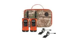 Designed for hunters and those requiring long-range communications support, the two-pack of T265 Two-Way Radios from Motorola features a 25-mile range along with a variety of emergency features, and hands-free communication capabilities. Charge these Motorola T265 radios using the included micro-USB charging adapter, and begin scanning through up to 22 channels and up to 121 privacy codes for a reliable line of communication lasting up to 12 hours using the included NiMH batteries. In addition to the multiple channels supported by the T265 radios, users also benefit from dedicated call tones, a battery meter with low-battery alert, a talk confirmation tone, and NOAA weather alerts. This two-pack of Motorola two-way radios comes with a single charging adapter with dual micro-USB connectors, two NiMH batteries, two belt clips, two earbuds with PTT microphone, and a carrying case to ensure you have everything you need wherever your adventures may take you.![]()