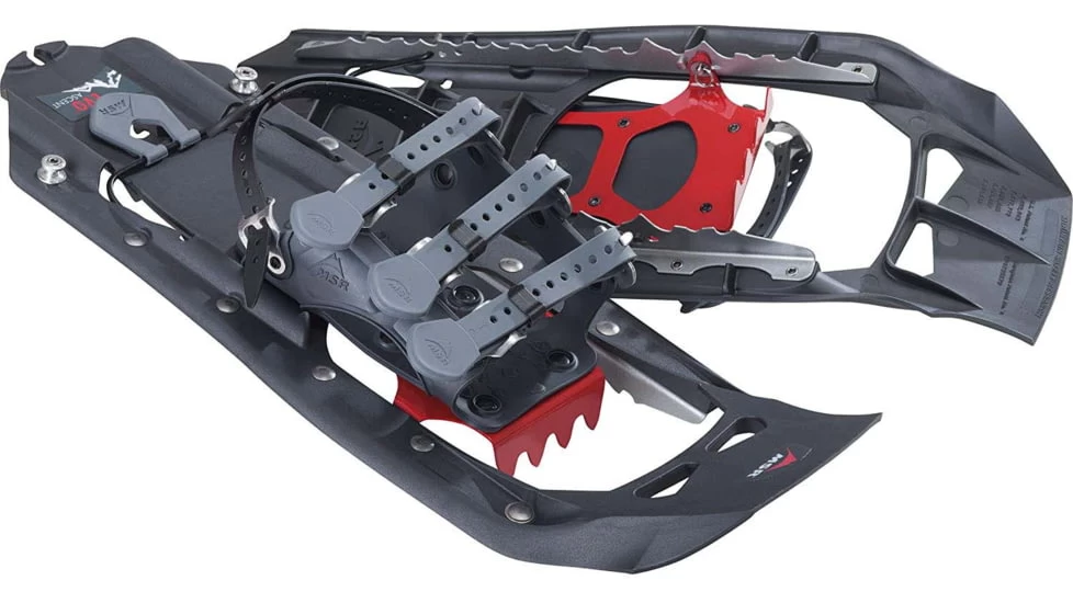 UniBody Traction: Steel traction rails and brake bars molded directly into snowshoe decks provide a secure grip.