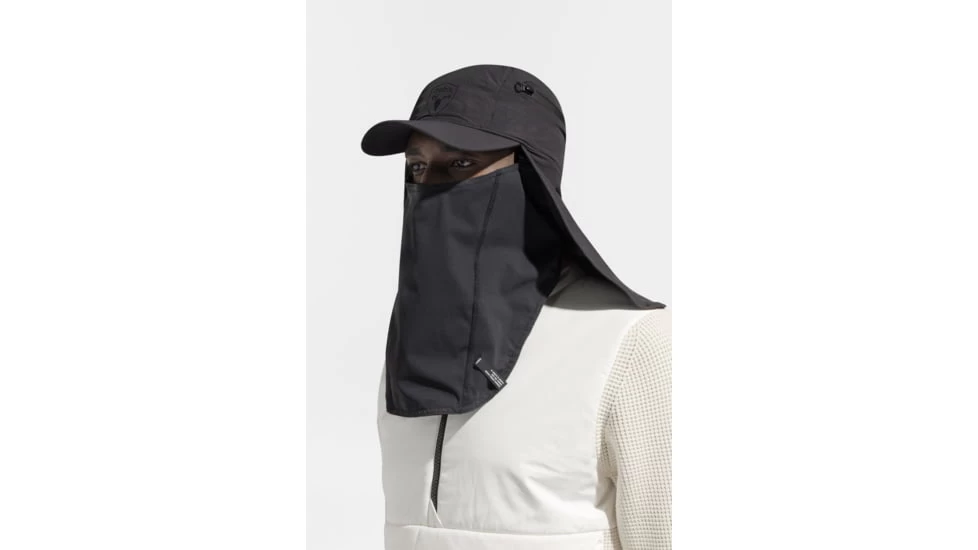 The Tal unisex cap bridges fashion and function with its unique 3-in-1 construction. Crafted from a premium, water-resistant stretch fabric, it offers added protection against the sun and rain with an adjustable brim to shield the eyes and face, along with a neck shade to cover the ears and back of the neck and a detachable face covering. A zippered pocket offers convenient storage for small essentials like cash and cards, while a cobra buckle at the back allows you to secure the perfect fit.![]()