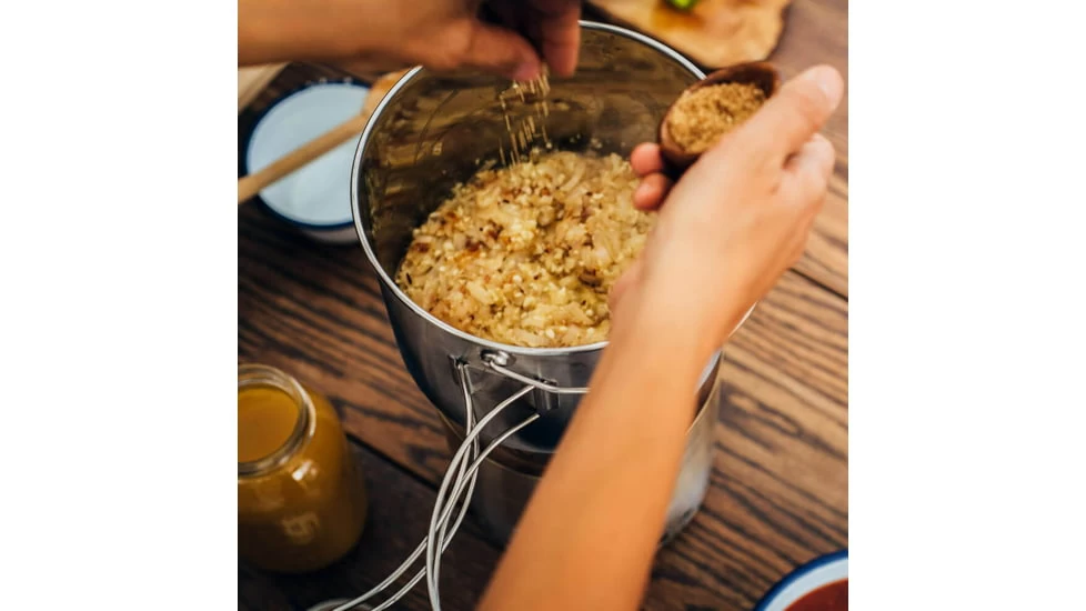 Pot 4000 is made with durable 304 stainless steel, just like your Campfire camp stove. Cook up a hot meal for your small group and nest Campfire inside when its time to get moving.