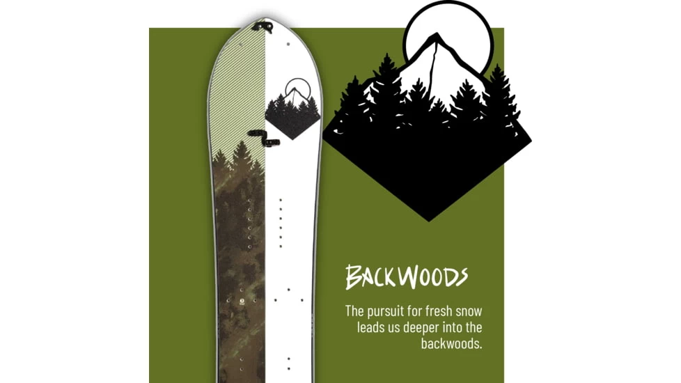 The Backwoods is a powder and freeride hybrid that prefers trees, powder and steeps. Like most powder boards, the Backwoods has a very wide nose and a tapered tail, but it differentiates itself with a mid-stiff flex, the Freeride camber-dominant profile and only 10mm of setback. This combination keeps the board nimble in trees, reliable on crud, and floaty in deep snow. A powerful core of poplar and bamboo stringers helps keep this board smooth and surfy while tip to tail carbon stringers give it a little extra pop. The castor bean based, Rugged Nylon topsheet, helps shed snow and adds durability while the Sintered 4001 base provides top of the line speed in a minimalist black design to create seamless repairs. All of this helps the Backwoods to slay pow while still performing in variable conditions as you hop from pow stash to pow stash.![]()