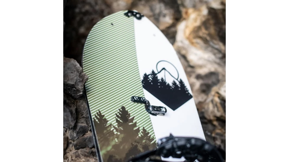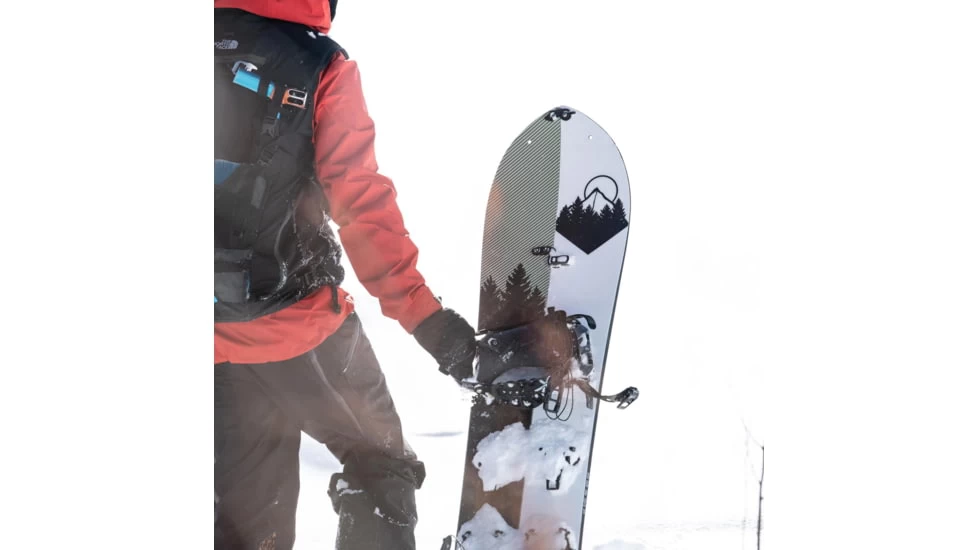 As with all the splitboards, they shift the touring bracket forward to make kick-turns a breeze and on this model they utilize active latching Karakoram UltraClips 2.0, installed with the holeless base technology, to help create the most responsive ride.