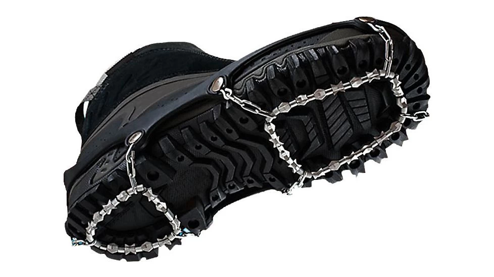 Diamond Grips provide aggressive traction for all winter walking conditions, from boilerplate ice to backcountry snow and everything in between. They are also effective when transitioning through gravel, rock and mud from icy surfaces. Made of case hardened steel alloy, and strung on steel aircraft cable, the patented Diamond Beads have hundreds of biting edges that grip in all directions. The bead assemblies are riveted to a tough rubber sling which remains elastic in subzero temperatures. They are easy to put on and take off, yet fit snugly and stay on without the need for additional straps. Diamond Grips are also self clearing, so there is no snow or ice build up. There is no other traction footwear product like it!![]()
